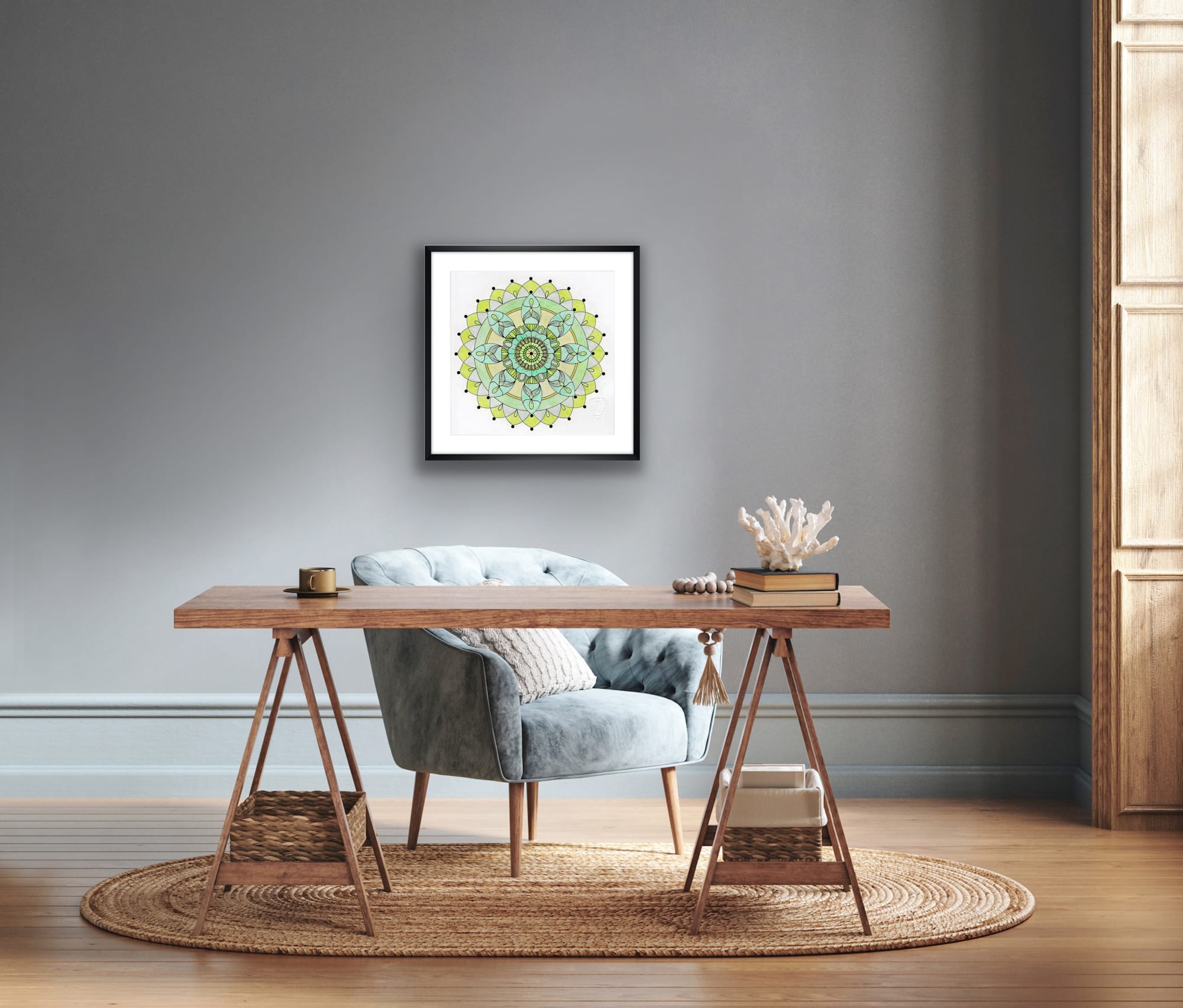 Lassen Sie sich von der limitierten Auflage des Mandala-Kunstdrucks "Balance" verzaubern und verwandeln Sie Ihren Raum in ein Heiligtum der Gelassenheit.