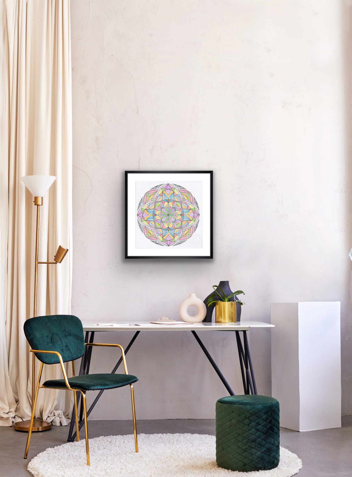 Cada trazo de este mandala de intrincado diseño refleja los ricos matices y las diversas energías que nos rodean. Esta cautivadora pieza es una celebración de la belleza que se encuentra en cada rincón de nuestro mundo, invitándote a abrazar el caleidoscopio de colores que hacen que la vida sea realmente extraordinaria.